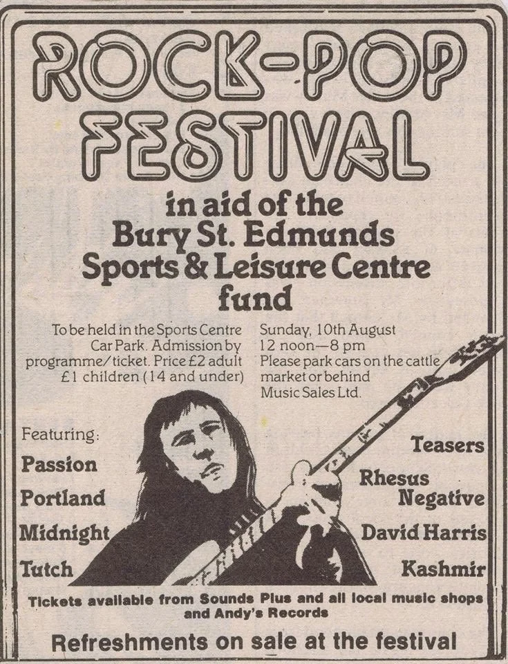 Rock Concert to Raise Funds to re-build the Bury St Edmunds Sports Centre 1980